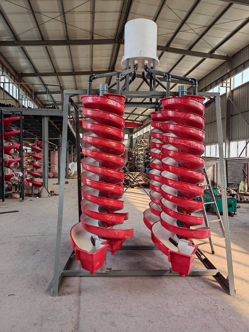 技術研革 我公司生產6-S搖床、螺旋溜槽已30載,型號從φ400—φ2000,選別曲線不斷優化,從立方拋物線、橢圓曲線到復合曲線,使設備的選別性能更加優化,滿足不同礦物選別的需求。世界上大規格的螺旋溜槽(直徑2000mm),就是我公司生產并通過部級技術鑒定而獲獎的。現在我公司可生產318種不同規格型號的螺旋溜槽,可按用戶的“腳”制造適合的“鞋”,保證滿足用戶要求。我公司的高技術人員還可為設計方案提供咨詢意見,以便用戶獲得好的經濟指標。